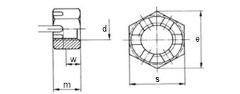 Ecrous hexagonaux à créneaux DIN 935. ISO 7035. Matière : acier inoxydable A2 ou A4 (au choix).